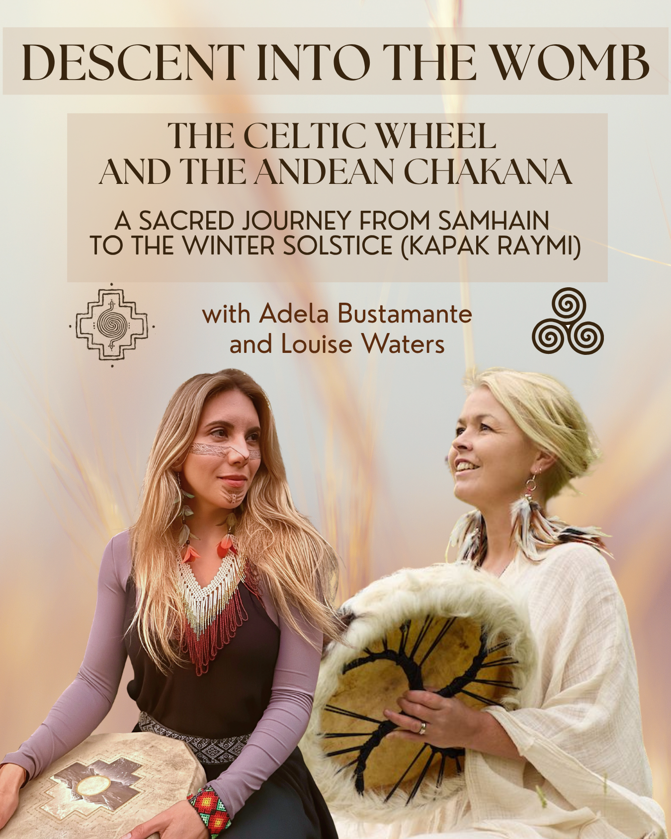 The course orients around ancestral repair, women’s rites of passage, and the cosmological mirrors between Ireland and the Andes—two landscapes carved by stone, mountain, river, and memory.